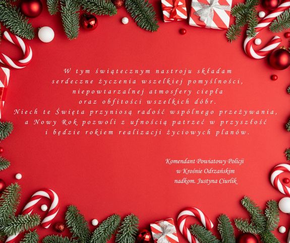 Życzenia Komendanta Powiatowego Policji w Krośnie Odrzańskim z okazji Świąt Bożego Narodzenia Dodano: 23.12.2025